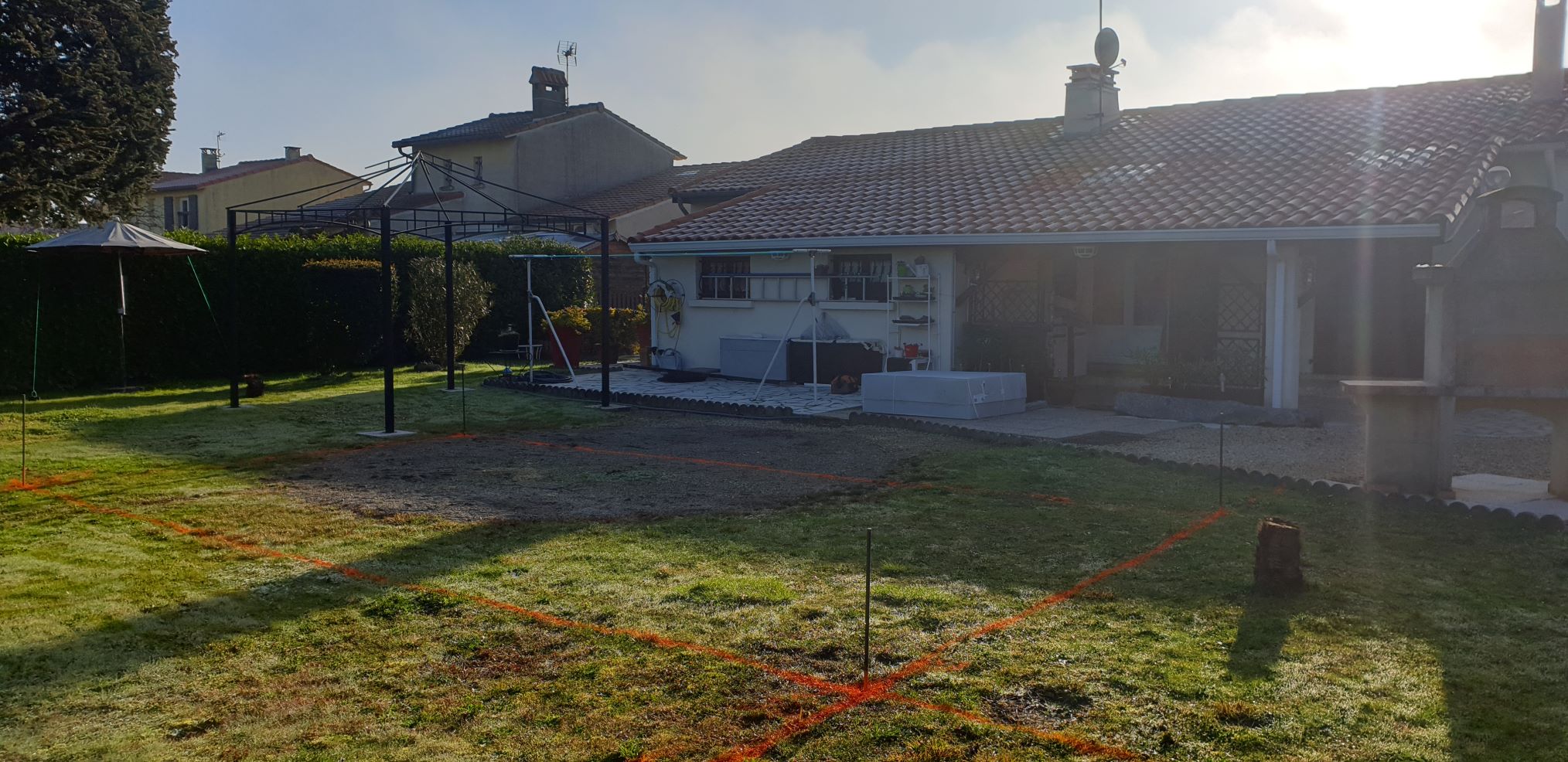 Après vérifier la qualité du sol, nous avons fait le traçage et point de niveau.