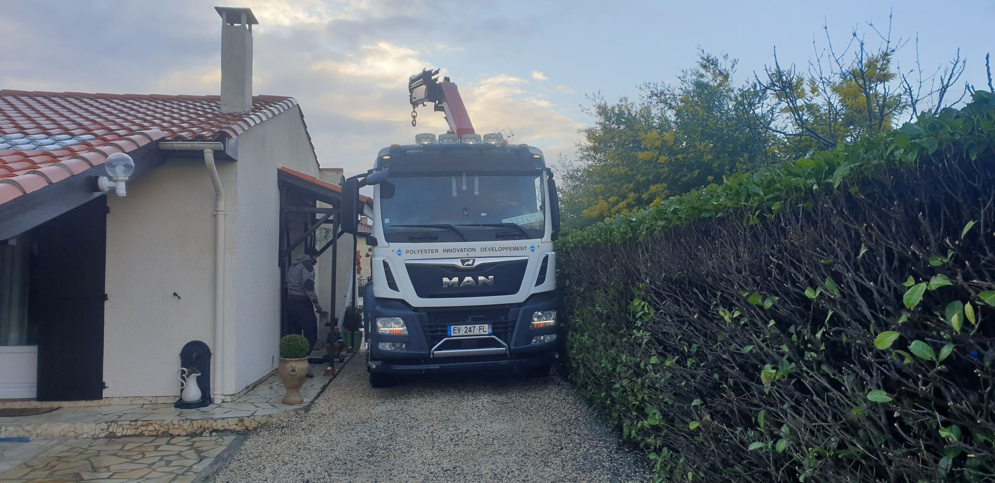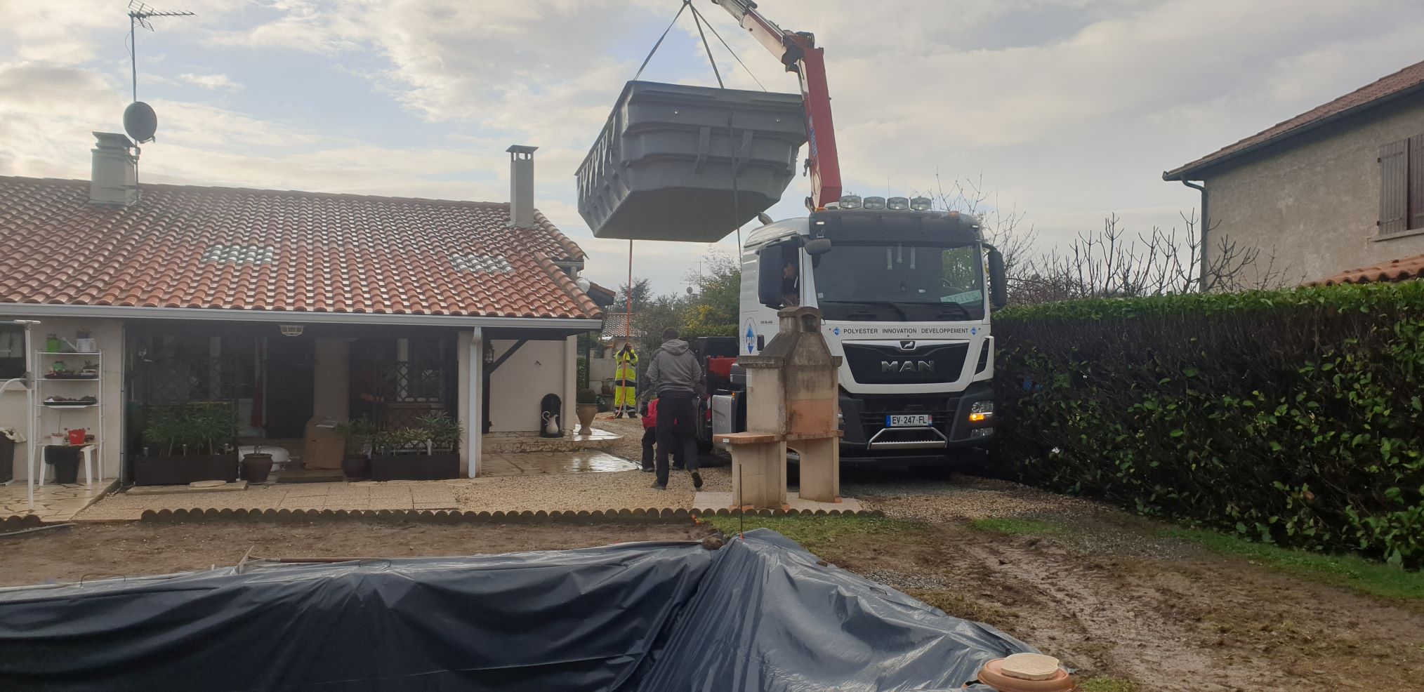 La livraison de la piscine est assurée par notre équipe dans le strict respect des conditions normales de sécurité (attention aux arbres, fils électriques, téléphoniques, etc…). En général, elle s’effectue avec le camion de livraison équipé d’une grue de levage et d’un palonnier.