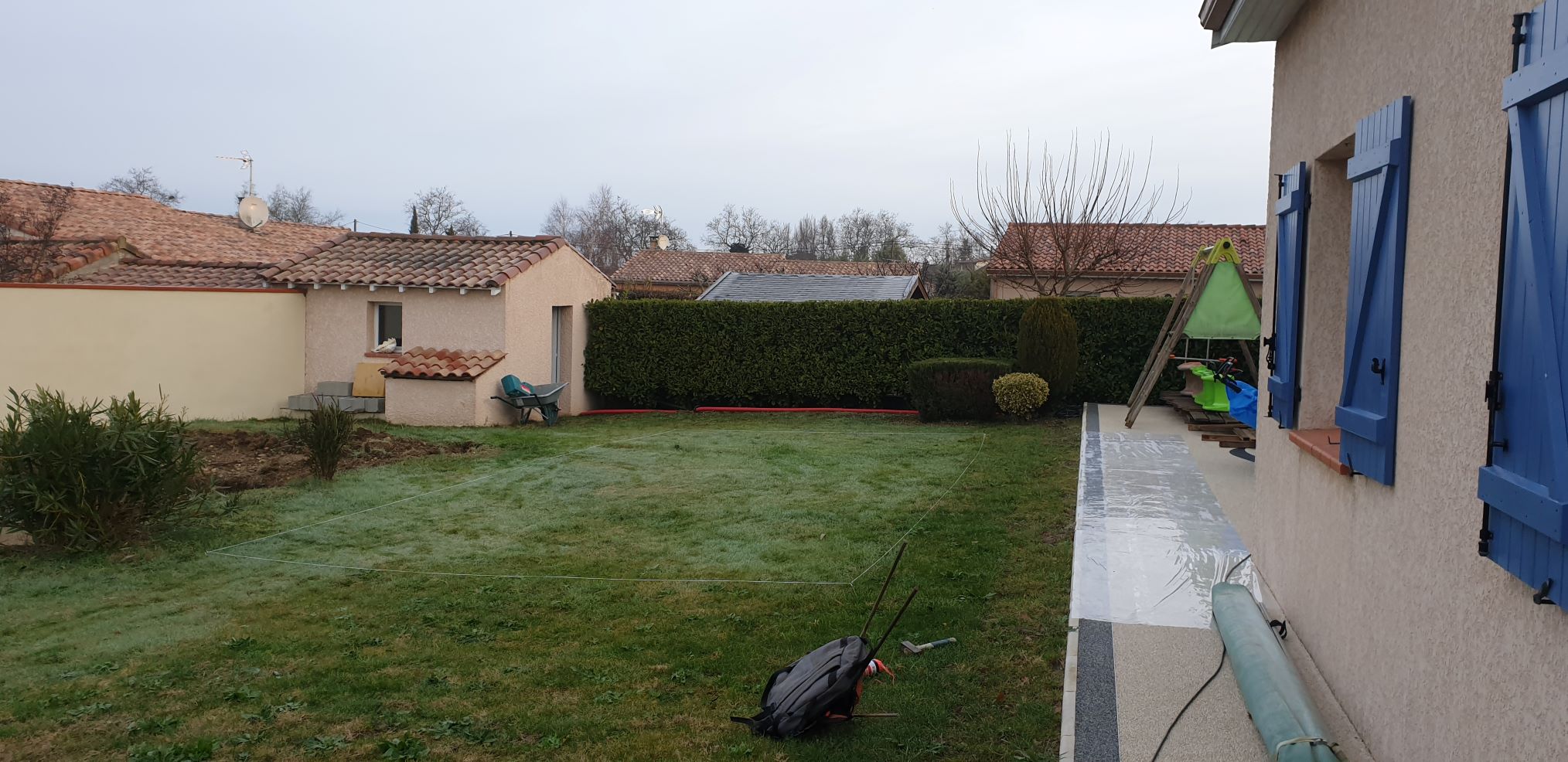 Dès que nous avons fini le terrassement, nous avons procédé à la mise en place du géotextile, des règles et du gravier concassé.